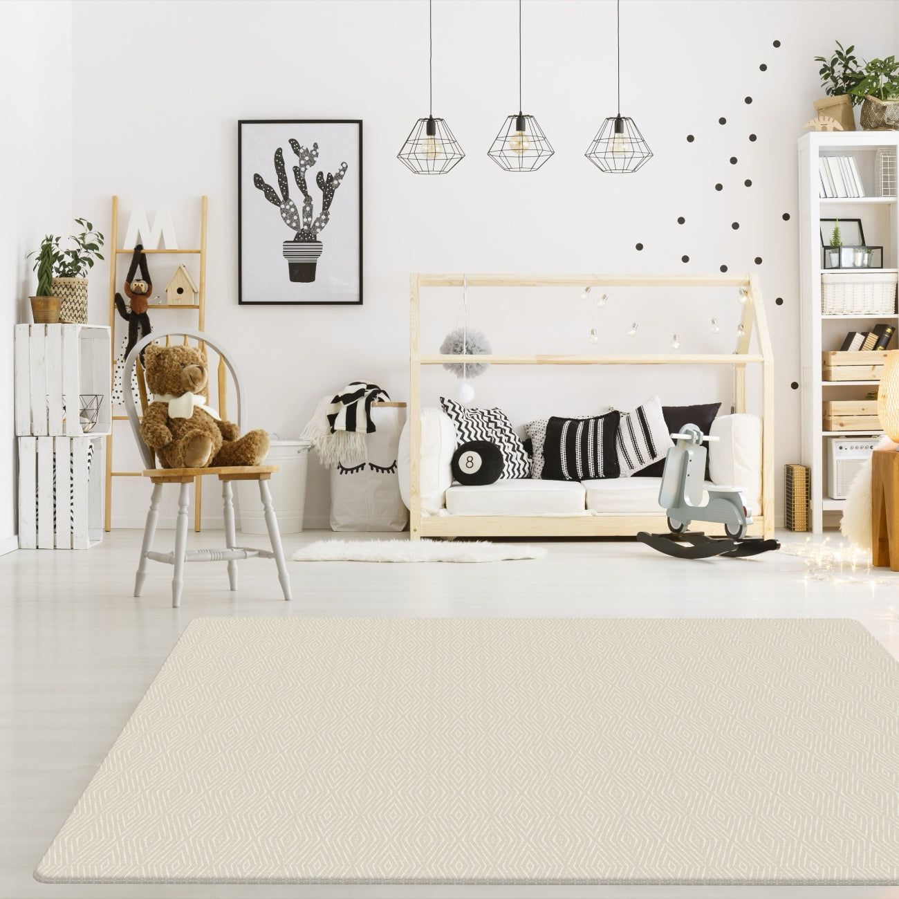 Lado A: Colores beige claro con figuras en forma de pequeño diamantes de color blanco que simulan una alfombra real.