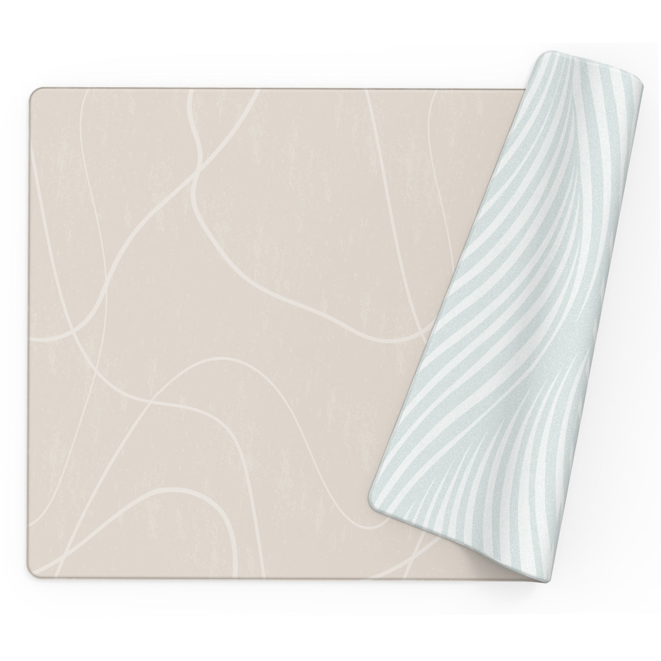 Lado B: Inspirado en las playas y en la orilla del mar. Fondo color arena con detalles que dan una textura única, y líneas que dan movimiento en tonos crema.