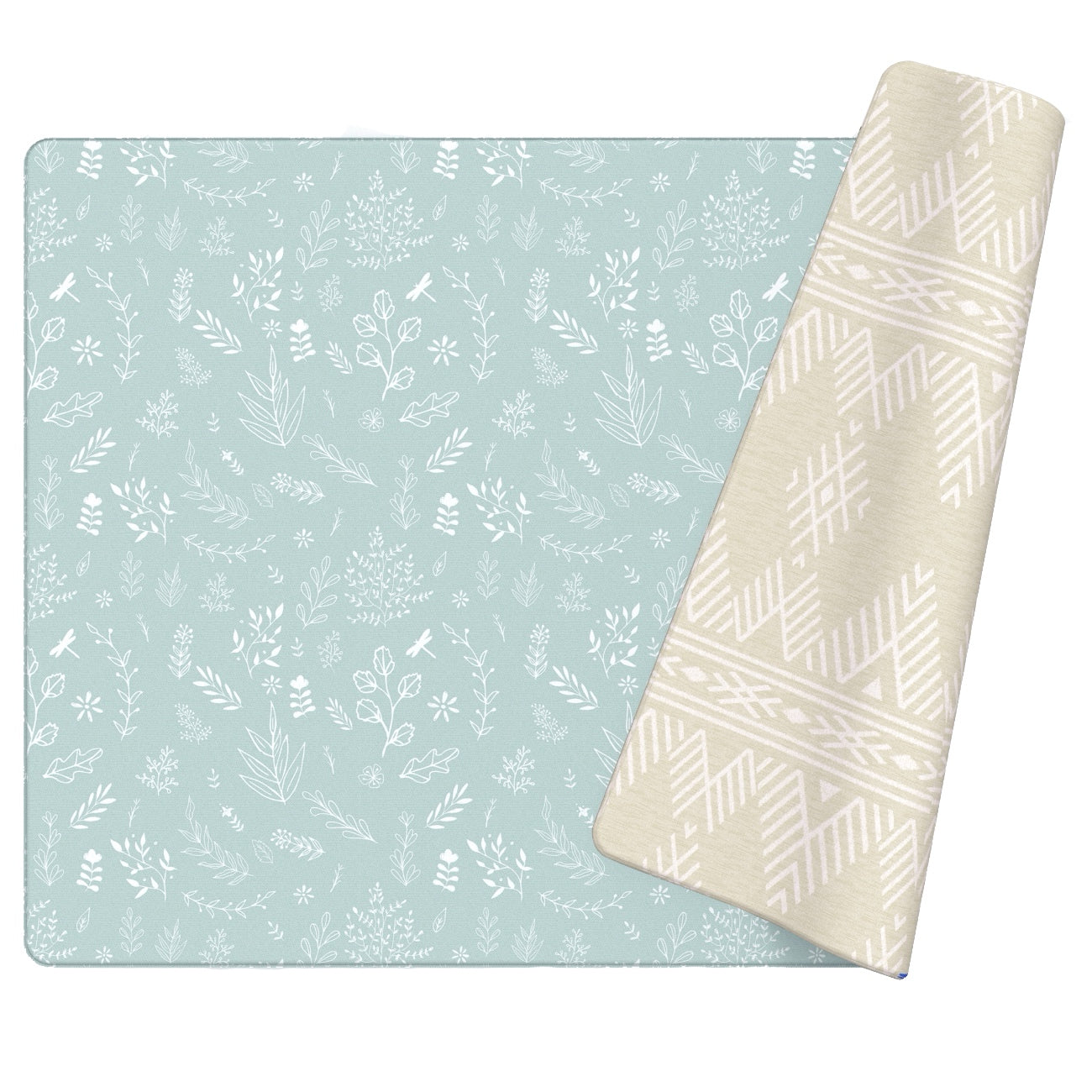 Lado A: Diseño botánico inspirado en la naturaleza en color blanco. De fondo, un tono verde agua fácil de combinar con cualquier decoración y espacio.